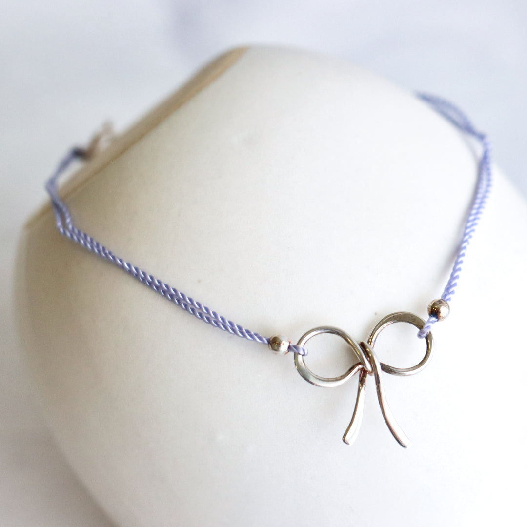 Tie the Knot charm in silver accents with smooth beads strung onto a durable nylon thread.