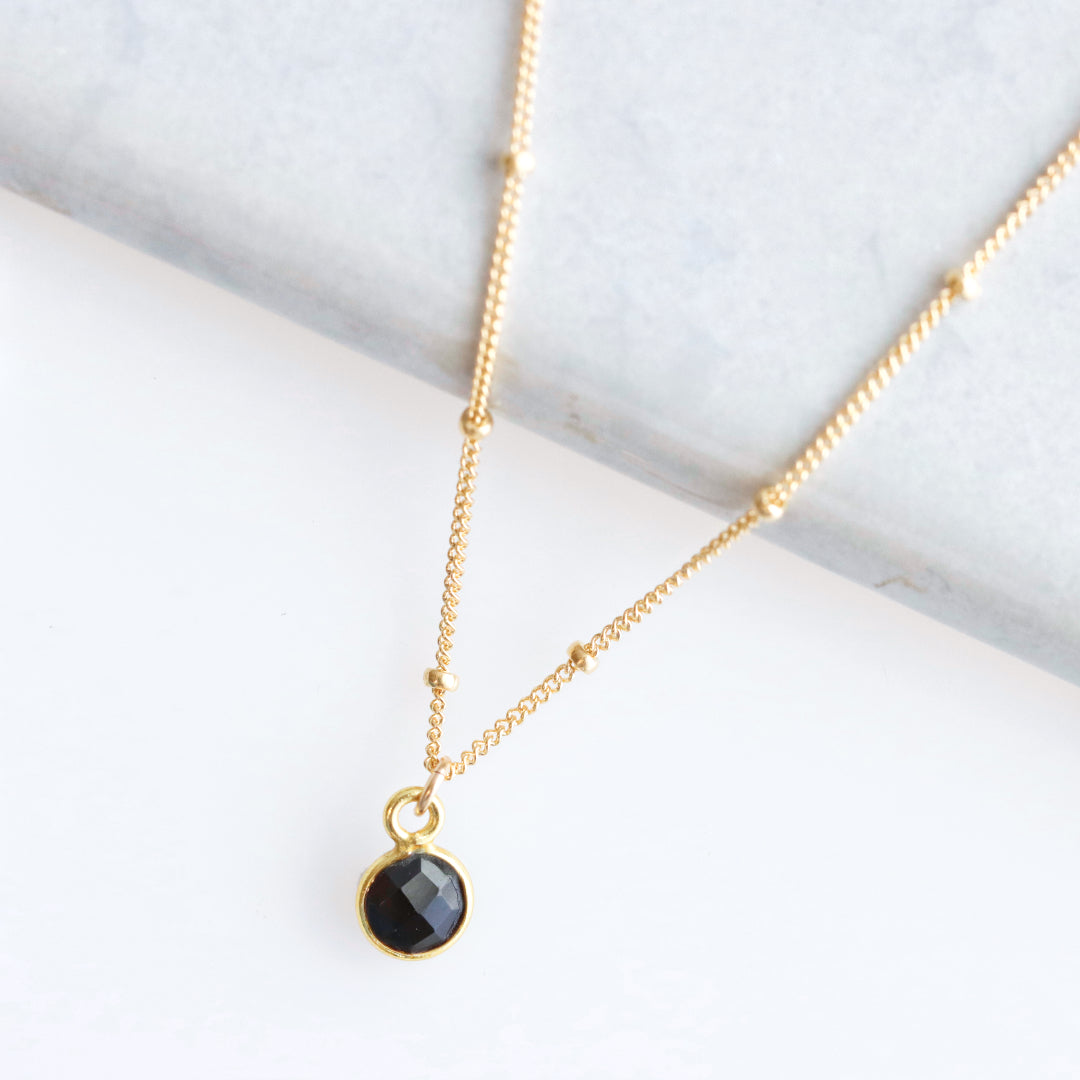 Faceted onyx gem hangs freely on a nugget rolo chain necklace.