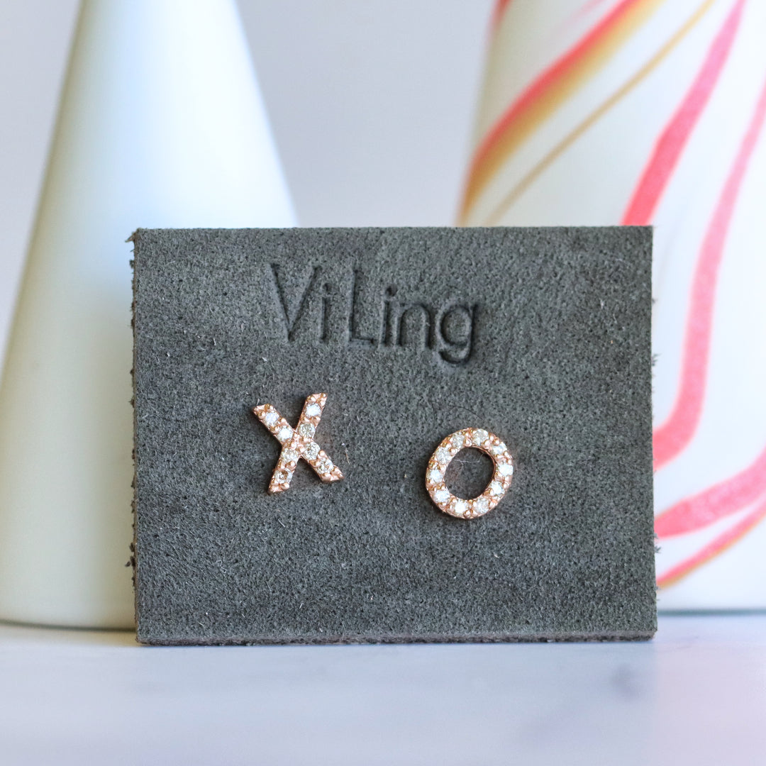 Hugs & Kisses XO sparkles with pave set Diamonds on 14k rose gold. Wear singly, paired or create a stacked look.